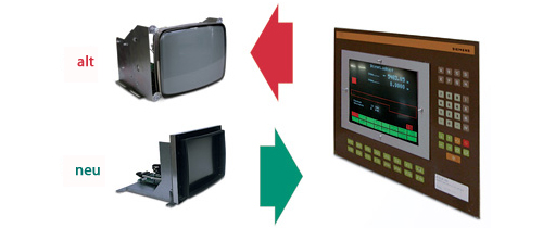 Bedienfelder an Maschinensteuerungen älteren Baujahres enthalten oft Röhrenmonitore, die schlecht ablesbar sind, starke Einbrenn-Effekte aufweisen oder defekt sind. Ersatz bieten moderne TFT-LCD-Monitore, welche elektrisch und mechanisch kompatibel und einfach auszutauschen sind.